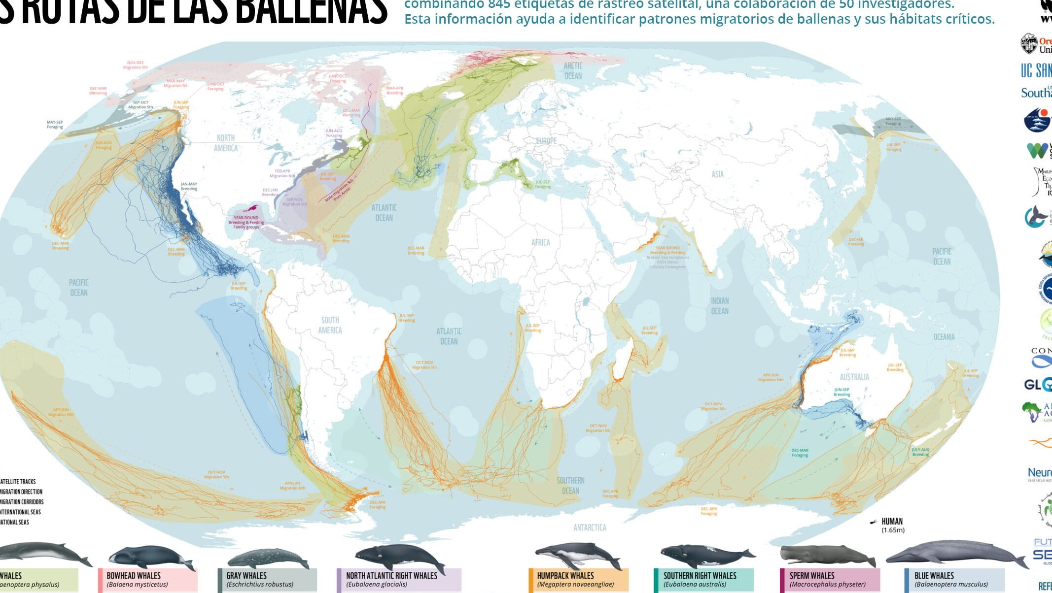 - Investigaciones científicas sobre las rutas migratorias de las ballenas azules
